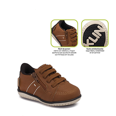 Zapatilla Flyer de niño color caramelo es casual y atemporal. Cuenta con cordón elástico y Cierre a un costado para un mejor ajuste, facilitando su postura. Es totalmente anatómico adaptándose al pie del niño,brinda mayor estabilidad, seguridad,comodidad y soporte. Su forro interior es textil con mayor protección en su talón y punta mas reforzada.
